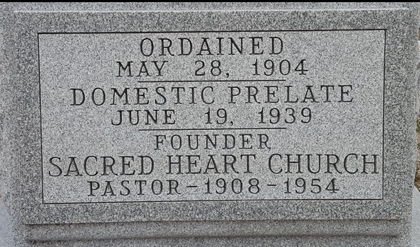 Founder of Sacred Heart Church; Pastor 1908-1954Note: Information taken from “Indiana Knox County Vincennes City–Catholic Cemeteries, Book Five, 1975”.