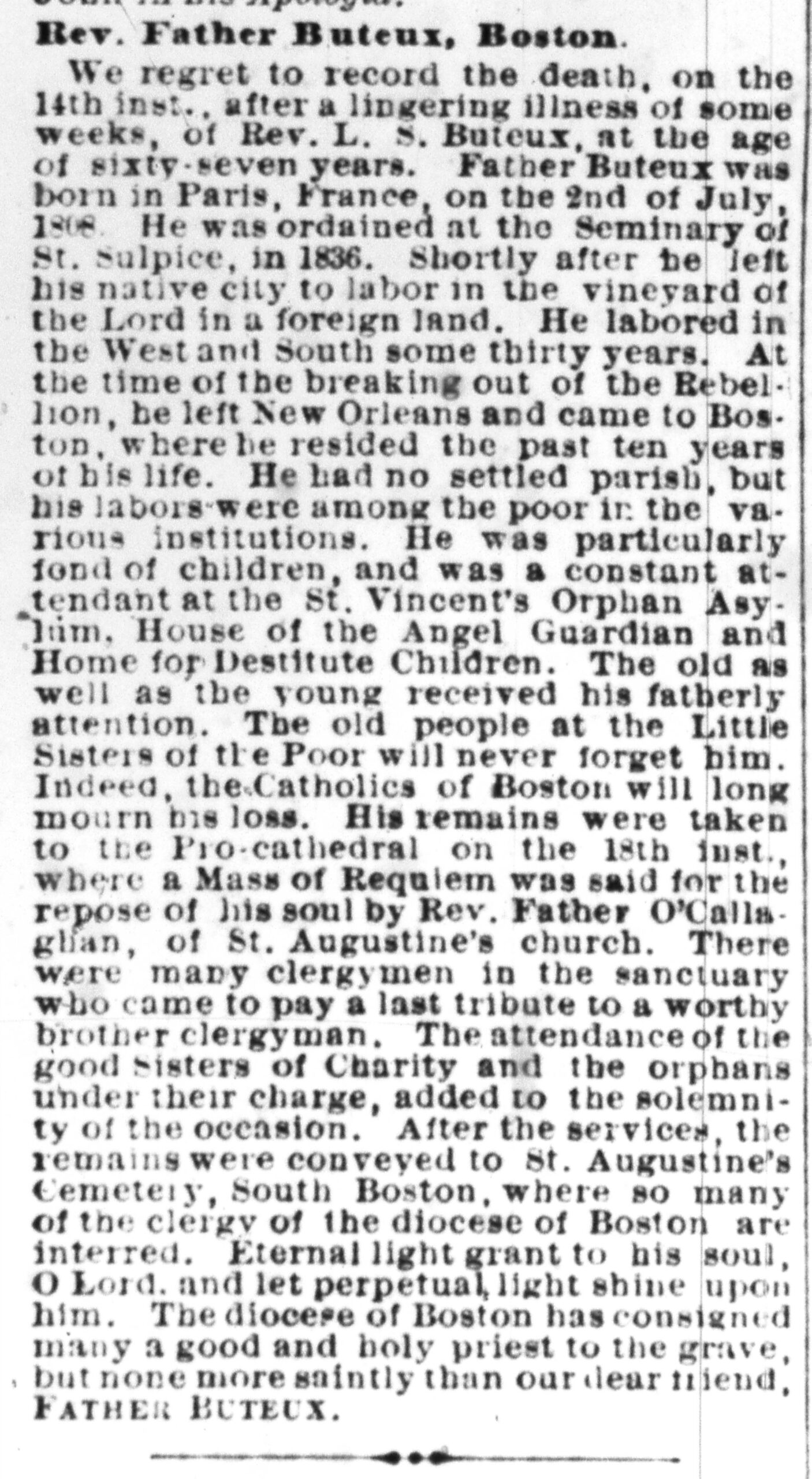 Burial Info: St Augustine Cemetery Chapel, Priests Section Boston MA