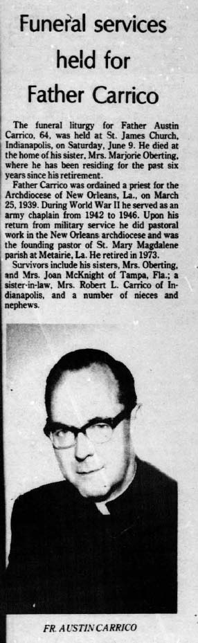 Buried: Calvary Cemetery, Priests Circle – Indianapolis, Indiana 06-09-1979